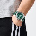 This Adidas watch has a case made of Steel silver with a diameter of 44 mm and is fitted with a rubber strap. Inside the case lies a Timex movement and the watch features a Mineral crystal.