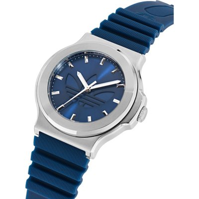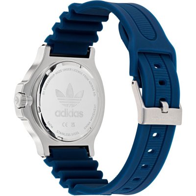 This Adidas watch has a case made of Steel silver with a diameter of 41 mm and is fitted with a rubber strap. Inside the case lies a Timex movement and the watch features a Mineral crystal.