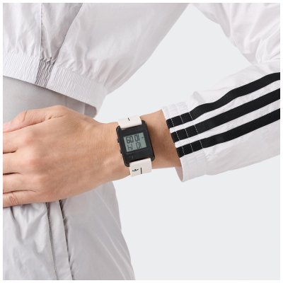 This Adidas watch has a case made of Steel silver with a diameter of 31 mm and is fitted with a rubber strap. Inside the case lies a Timex movement and the watch features a Mineral crystal.
