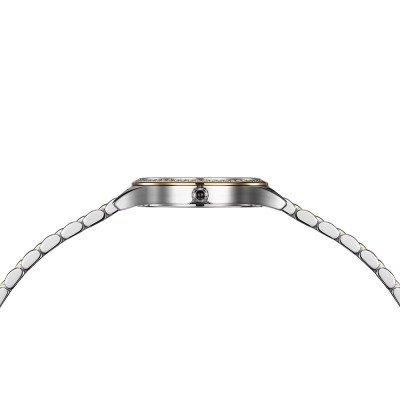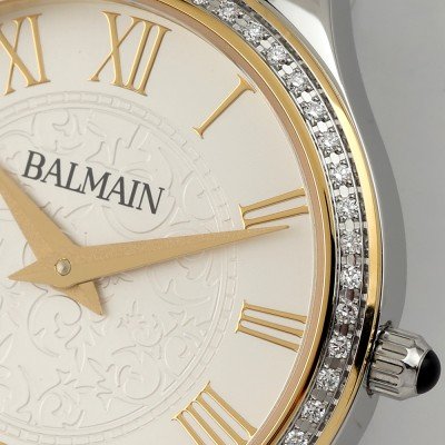 This Swiss Made Balmain de Balmain ladies watch is a refined ladies watch that mixes Parisian Haute Couture style with a modern twist. Its case is set with 56 Top Wesselton W-SI diamonds for a total of 0.221 carats. The 29 mm two-tone stainless steel and gold PVD case has a slim 6.00 mm profile matched by an elegant 'rice grain' bracelet. Classic yet confidently modern, for the woman who effortlessly combines quality and style.