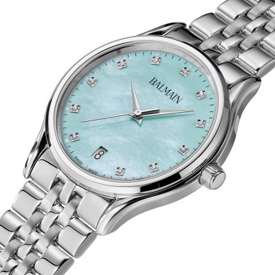 This Balmain watch has a case made of Steel silver with a diameter of 32 mm and is fitted with a Steel silver strap. Inside the case lies a ETA movement and the watch features a Sapphire crystal.