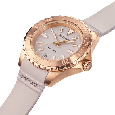 This Balmain watch has a case made of Steel silver with a diameter of 35 mm and is fitted with a rubber strap. Inside the case lies a ETA movement and the watch features a Sapphire crystal.