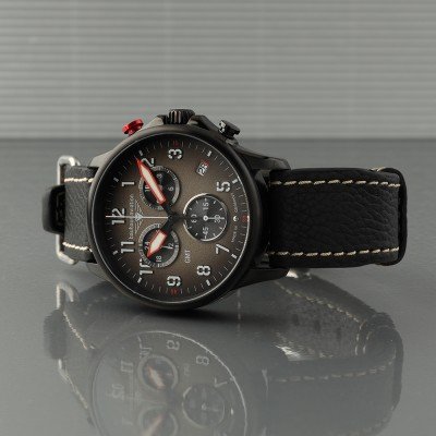 This Bauhaus watch has a case made of Steel silver with a diameter of 42 mm and is fitted with a leather strap. Inside the case lies a ETA movement and the watch features a K1 Mineral crystal.