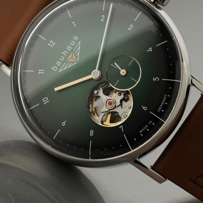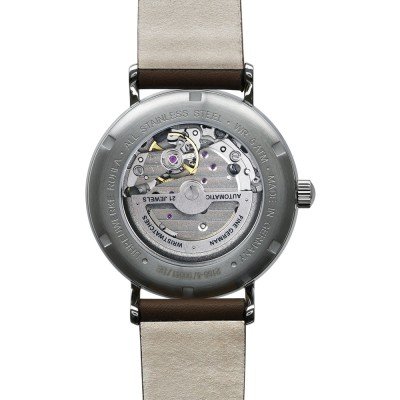 This Bauhaus watch has a case made of Steel silver with a diameter of 41 mm and is fitted with a leather strap. Inside the case lies a Miyota movement and the watch features a K1 Mineral crystal.