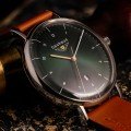 This Bauhaus watch has a case made of Steel silver with a diameter of 41 mm and is fitted with a leather strap. Inside the case lies a Ronda movement and the watch features a K1 Mineral crystal.