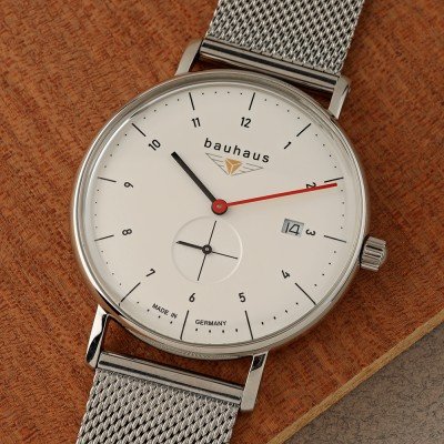 This Bauhaus watch has a case made of Steel silver with a diameter of 41 mm and is fitted with a Steel silver strap. Inside the case lies a Ronda movement and the watch features a K1 Mineral crystal.