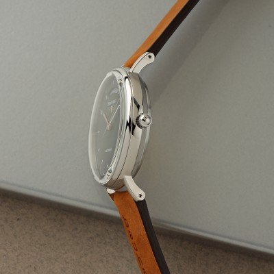 This Bauhaus watch has a case made of Steel silver with a diameter of 41 mm and is fitted with a leather strap. Inside the case lies a Miyota movement and the watch features a K1 Mineral crystal.