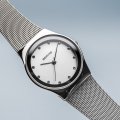 This Bering watch has a case made of Steel silver with a diameter of 27 mm and is fitted with a Steel silver strap. Inside the case lies a Miyota movement and the watch features a Sapphire crystal.