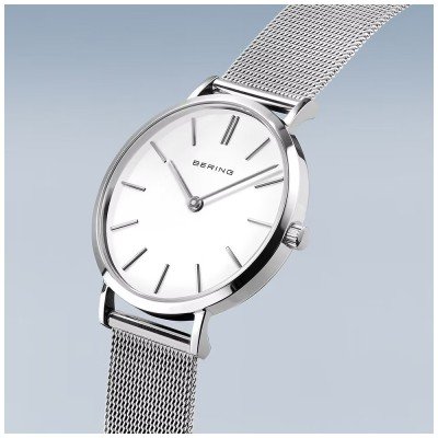 This Bering watch has a case made of Steel silver with a diameter of 34 mm and is fitted with a Steel silver strap. Inside the case lies a Miyota movement and the watch features a Sapphire crystal.