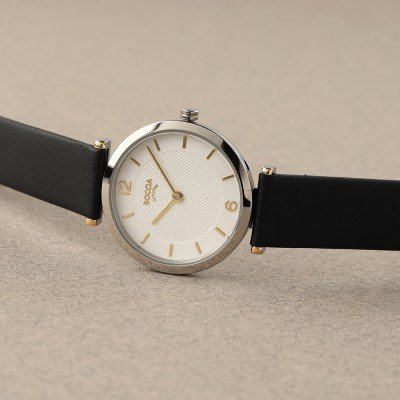 This Boccia watch has a case made of Titanium with a diameter of 30 mm and is fitted with a leather strap. Inside the case lies a Miyota movement and the watch features a Mineral crystal.