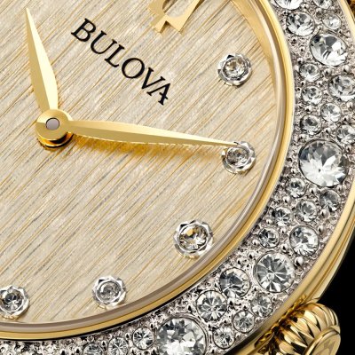 This Bulova watch has a case made of Steel silver with a diameter of 32 mm and is fitted with a Steel silver strap. Inside the case lies a Miyota movement and the watch features a Sapphire crystal.