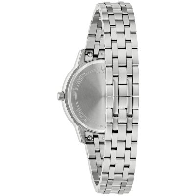 This Bulova watch has a case made of Steel silver with a diameter of 31 mm and is fitted with a Steel silver strap. Inside the case lies a Miyota movement and the watch features a Mineral crystal.