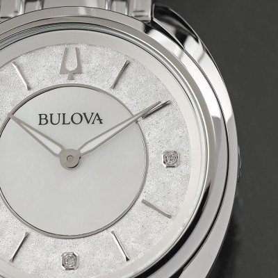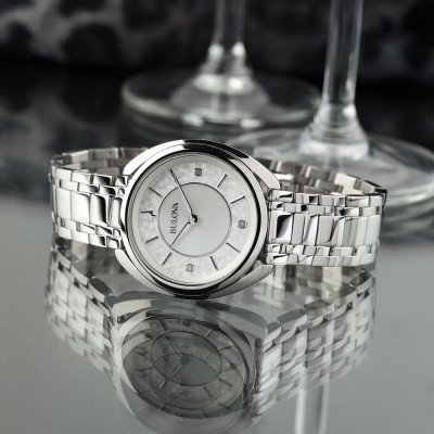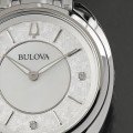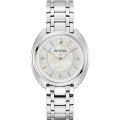 This Bulova watch has a case made of Steel silver with a diameter of 34 mm and is fitted with a Steel silver strap. Inside the case lies a Miyota movement and the watch features a Mineral crystal.