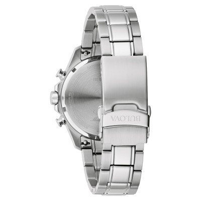 This Bulova watch has a case made of Steel silver with a diameter of 43 mm and is fitted with a Steel silver strap. Inside the case lies a Miyota movement and the watch features a Sapphire crystal.