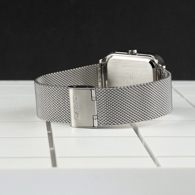 This Casio watch has a case made of Steel silver with a diameter of 34 mm and is fitted with a Steel silver strap. Inside the case lies a Casio movement and the watch features a Mineral crystal.
