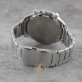 This Casio Edifice watch has a case made of Steel silver with a diameter of 50.5 mm and is fitted with a Metal strap. Inside the case lies a Casio movement and the watch features a Mineral crystal.