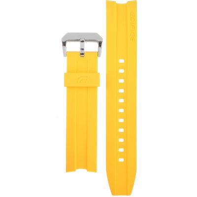 This Casio Edifice watch strap is made of plastic/Resin and is attached to the watch by means of push pins. The band has a width of 22 mm and is closed by means of a buckle. The strap has no straight mount which means that this strap is only suitable for the watches listed below.
