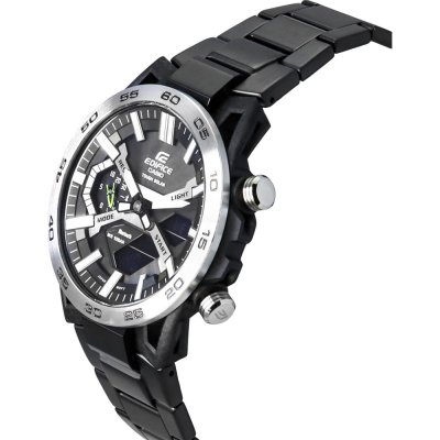 This Casio Edifice watch has a case made of Carbon reinforced resin with a diameter of 48 mm and is fitted with a Steel silver strap. Inside the case lies a Casio movement and the watch features a Mineral crystal.