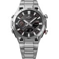 This Casio Edifice watch has a case made of Stainless steel and carbon with a diameter of 45.8 mm and is fitted with a Steel silver strap. Inside the case lies a Casio movement and the watch features a Mineral crystal.