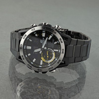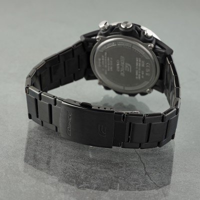 This Casio Edifice watch has a case made of Carbon reinforced resin with a diameter of 46 mm and is fitted with a Metal strap. Inside the case lies a Casio movement and the watch features a Mineral crystal.
