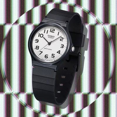 This Casio watch has a case made of Resin with a diameter of 34.9 mm and is fitted with a Resin strap. Inside the case lies a Ronda movement and the watch features a Acrylic crystal.