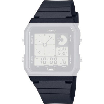 This Casio watch strap is made of bio-sourced resin and is attached to the watch by means of push pins. The band has a width of 23 mm and is closed by means of a buckle. The strap has no straight mount which means that this strap is only suitable for the watches listed below.