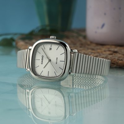 This Casio watch has a case made of Steel silver with a diameter of 30 mm and is fitted with a Steel silver strap. Inside the case lies a Casio movement and the watch features a Mineral crystal.