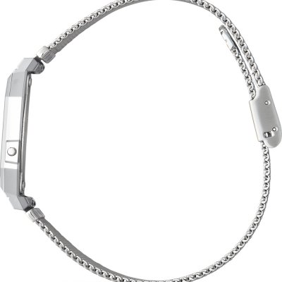 This Casio watch has a case made of Plastic / Resin with a diameter of 32.8 mm and is fitted with a Steel silver strap. Inside the case lies a Casio movement and the watch features a Acrylic crystal.