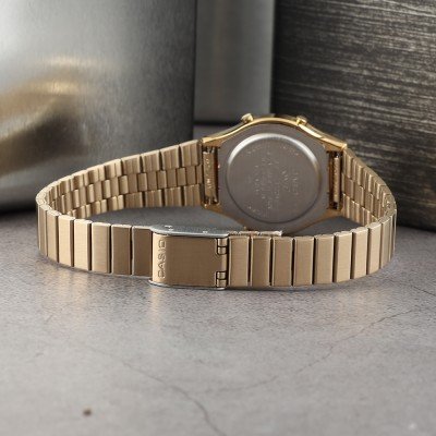 This Casio watch has a case made of Plastic / Resin with a diameter of 24.6 mm and is fitted with a Steel silver strap. Inside the case lies a Casio movement and the watch features a Acrylic crystal.