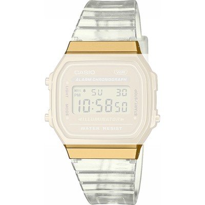 This Casio watch strap is made of resin and is attached to the watch by means of push pins. The band has a width of 21 mm and is closed by means of a buckle. The strap has no straight mount which means that this strap is only suitable for the watches listed below.