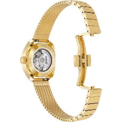 This elegant ‘turtle’ shaped DS-2 ladies watch combines a lustruous mother of pearl dial with contrasting gold toned hands with SuperLumiNova coating. A reliable Swiss Powermatic 48.111 automatic movement with up to 80 hours power reserve keeps it going for days. Like all Certina watches, due to the brand’s DS-Concept, the watch is 10 ATM water resistant and constructed to be robust and long lasting. Making the DS-2 Lady truly a quietly luxurious but powerful ladies watch.