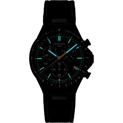 This Certina watch has a case made of Steel silver with a diameter of 41 mm and is fitted with a textile strap. Inside the case lies a ETA movement and the watch features a Single anti-reflective sapphire crystal.