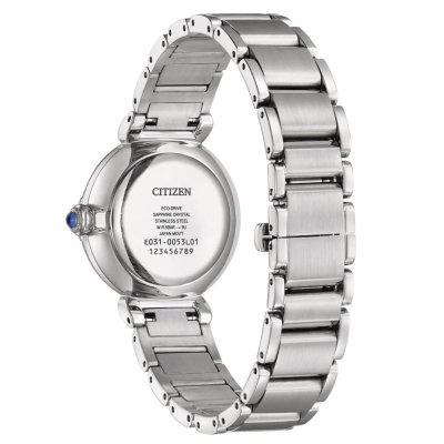 This Citizen watch has a case made of Steel silver with a diameter of 29.5 mm and is fitted with a Steel silver strap. Inside the case lies a Citizen movement and the watch features a Sapphire crystal.