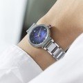 This beautiful Citizen L ladies watch is inspired by the beauty of the calm, blue sea. Four genuine diamonds on the dial represent the sea's sparkling surface, with air bubbles rising from the depths. The watch is a part of the exclusive Unite in blue collection and was limited to 2000 pieces worldwide. The Cal. E031 Eco-Drive solar movement has an accuracy of ±15 seconds per month and runs for 6 months on a full charge. The watch is water-resistant to 5 atm. Besides accurate and reliable, this eco-friendly ladies watch is stylish and elegant. A domed sapphire crystal, blue cabochon crown and crystals on the case add an additional touch of luxury.