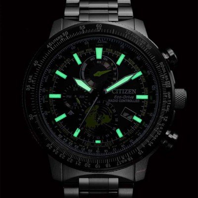 This Citizen watch has a case made of Steel silver with a diameter of 46 mm and is fitted with a Steel silver strap. Inside the case lies a Citizen movement and the watch features a Single anti-reflective sapphire crystal.