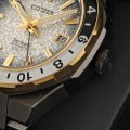 This mechanical GMT watch is part of the highly prized Citizen Series 8. It features a calibre 9054 movement, a 24-hour display, GMT hand, a date function and anti-magnetic protection. With water resistance up to 10 bar, a power reserve of 50 hours and an accuracy of -10/+20 seconds per day, this Series 8 watch impresses with both its functionality and its classy looks. The dark grey stainless steel case with anti-reflective sapphire crystal, 24-hour bezel and structured gradient dial offers not only robustness, but also adds style. This is a serious watch with a high degree of functionality and elegance to suit both a business and casual environment.