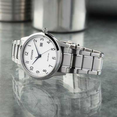 This Citizen watch has a case made of Steel silver with a diameter of 40 mm and is fitted with a Steel silver strap. Inside the case lies a Citizen movement and the watch features a Mineral crystal.