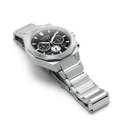 This Citizen watch has a case made of Super Titanium with a diameter of 41 mm and is fitted with a Super Titanium strap. Inside the case lies a Citizen movement and the watch features a Sapphire crystal.