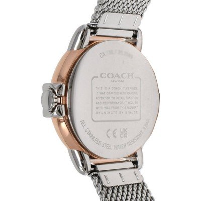 This Coach watch has a case made of Steel silver with a diameter of 28 mm and is fitted with a Steel silver strap. Inside the case lies a Seiko movement and the watch features a Mineral crystal.
