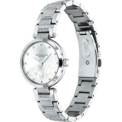 This Coach watch has a case made of Steel silver with a diameter of 30 mm and is fitted with a Steel silver strap. Inside the case lies a Seiko movement and the watch features a Mineral crystal.