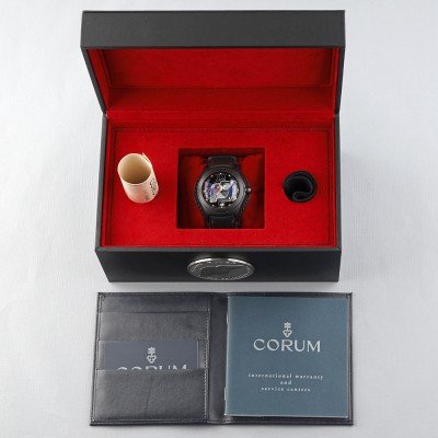This Corum watch has a case made of Steel silver with a diameter of 45 mm and is fitted with a leather strap. Inside the case lies a Sellita movement and the watch features a Sapphire crystal.