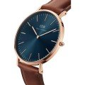 This Daniel Wellington watch has a case made of Steel silver with a diameter of 40 mm and is fitted with a leather strap. Inside the case lies a Miyota movement and the watch features a Mineral crystal.