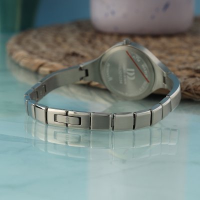 This Danish Design watch has a case made of Titanium with a diameter of 28 mm and is fitted with a Titanium strap. Inside the case lies a Ronda movement and the watch features a Mineral crystal.