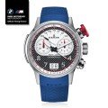 This limited to 600 edition set is dedicated to BMW Motorsport, with the iconic BMW colors represented in the design and four additional rubber straps. The Edox Chronorally watch was designed as an homage to the world of motorsport. Since its introduction in 2008, the Chronorally has been redefining prescision chronographs, designed to support rally drivers and motorsport enthusiasts. Edox has long been the official timekeeping partner for prestigious events such as the FIA World Rally Championship (WRC), the Dakar Rally, and the FIA World Rallycross Championship, as well as partnered with racing teams such as the former Formula 1 team Sauber F1 and of course BMW M Motorsport. The robust titanium case, oversized pusher, carefully designed dial, and the distinctive tire pattern on the rubber strap give the Chronorally a distinctive sporty look. Each model is built to endure intense conditions, with oversized start and stop pushers and highly readable chronographs that allow for split-second timing even under challenging circumstances, combining innovation with legacy, offering collectable timepieces that are both functional and steeped in automotive heritage.