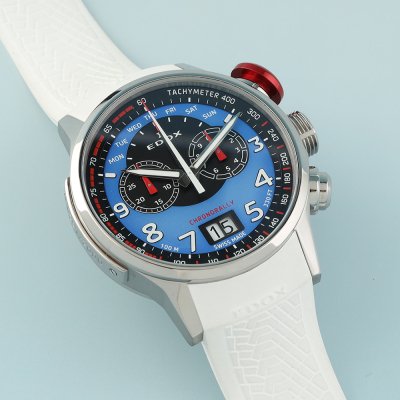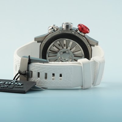 This Edox watch has a case made of Titanium with a diameter of 48 mm and is fitted with a rubber strap. Inside the case lies a Ronda movement and the watch features a Sapphire crystal.