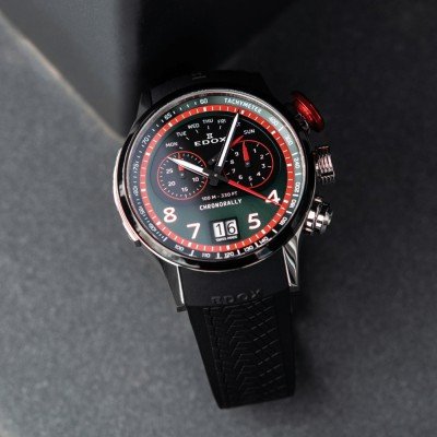 This Edox watch has a case made of Titanium with a diameter of 48 mm and is fitted with a rubber strap. Inside the case lies a Ronda movement and the watch features a Sapphire crystal.