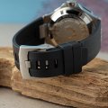 This Edox watch has a case made of Steel silver with a diameter of 43 mm and is fitted with a rubber strap. Inside the case lies a Sellita movement and the watch features a Sapphire crystal.