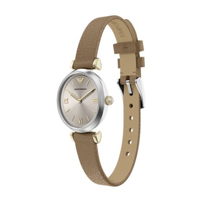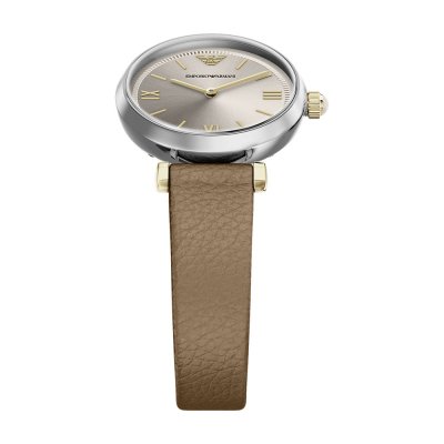 This Emporio Armani watch has a case made of Steel silver with a diameter of 28 mm and is fitted with a leather strap. Inside the case lies a Seiko Instruments Inc. movement and the watch features a Mineral crystal.