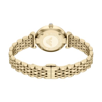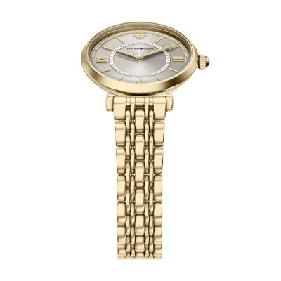 This Emporio Armani watch has a case made of Steel silver with a diameter of 32 mm and is fitted with a Steel silver strap. Inside the case lies a Seiko Instruments Inc. movement and the watch features a Mineral crystal.