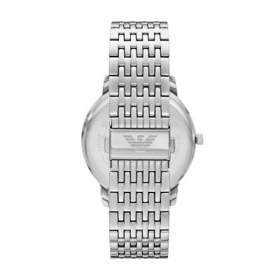 This Emporio Armani watch has a case made of Steel silver with a diameter of 42 mm and is fitted with a Steel silver strap. Inside the case lies a Miyota movement and the watch features a Mineral crystal.